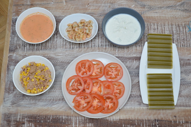 -Esparcimos por encima la vinagreta de tomate y decoramos con un poquito de atún y maíz.